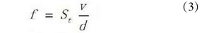 式中:f為渦街頻率,Hz;S,為斯特羅哈爾常數(shù)(無量綱);v為流體經(jīng)過發(fā)生體時的平均流速,m/s;d為發(fā)生體的特征寬度,m。