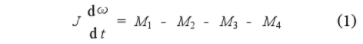 式中J一葉輪的慣性矩;dω/dt一葉輪的旋轉加速度;M1一流體驅動力矩;M2一黏性阻力距;M3一軸承摩擦阻力距;M4一磁阻力距。