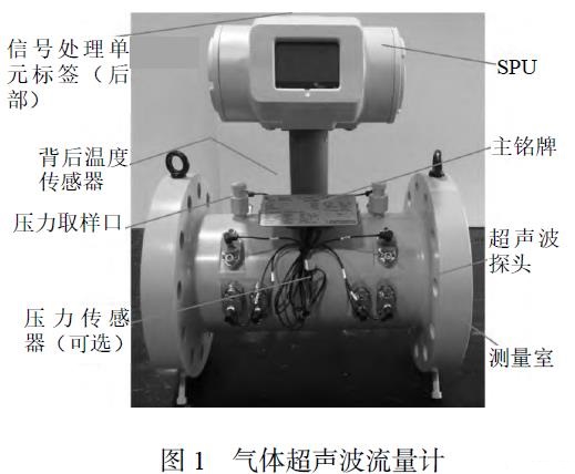 超聲波流量計主要由信號處理單元、超聲換能器(探頭)、流量計表體等部分構(gòu)成,如圖1 所示。其中信號處理單元接收探頭信號并將信息遠傳流量計算機;探頭通過換能器端口安裝于表體,負責收發(fā)聲波,并輸出電壓信號;流量計表體部分包括上下游直管段,上有超聲換能器端口、取壓口等。此外,壓力變送器、溫度變送器、色譜分析儀及流量計算機作為輔助儀表,用以測量現(xiàn)場數(shù)據(jù)。流量計算機利用現(xiàn)場數(shù)據(jù)計算介質(zhì)工況流量,并將工況流量轉(zhuǎn)換為標況流量。