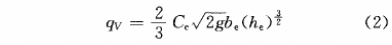式中:be--有效堰口寬度,m,be=b+Kb(b-實測堰口寬度,m,Kb--寬度修正系數(shù))