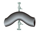 ●差壓變送器應(yīng)安裝在彎管傳感器的下方,使引壓管中的氣體排放回到管道中。如果現(xiàn)場(chǎng)條件是差壓變送器必須安裝在彎管傳感器上方,則要求與根閥連接的引壓管應(yīng)先向下,然后緩變轉(zhuǎn)彎向上,與差壓變送器連接。
